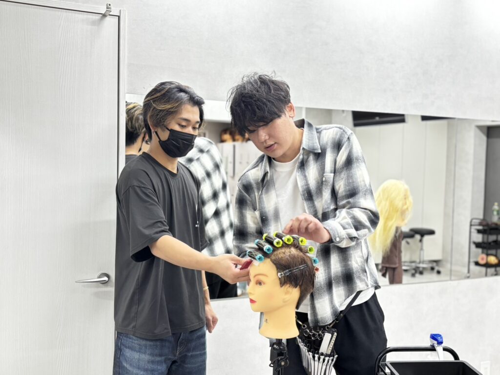 担当は、カット全般から薬剤知識、そして接客や言葉遣いまで、各種指導させていただいてます。